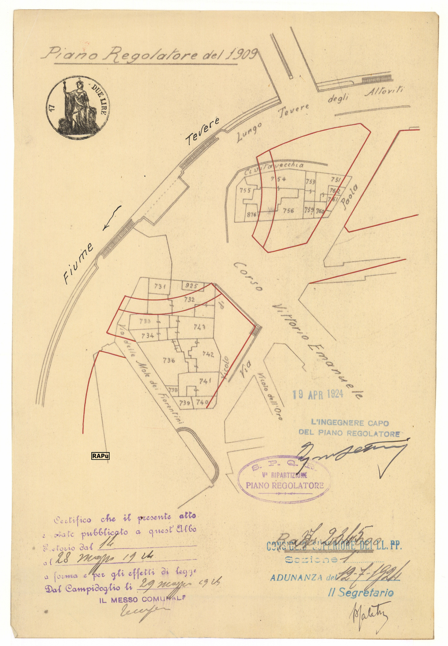 Varianti al piano regolatore per il piazzale alla testata di sinistra del ponte Vittorio Emanuele di Roma